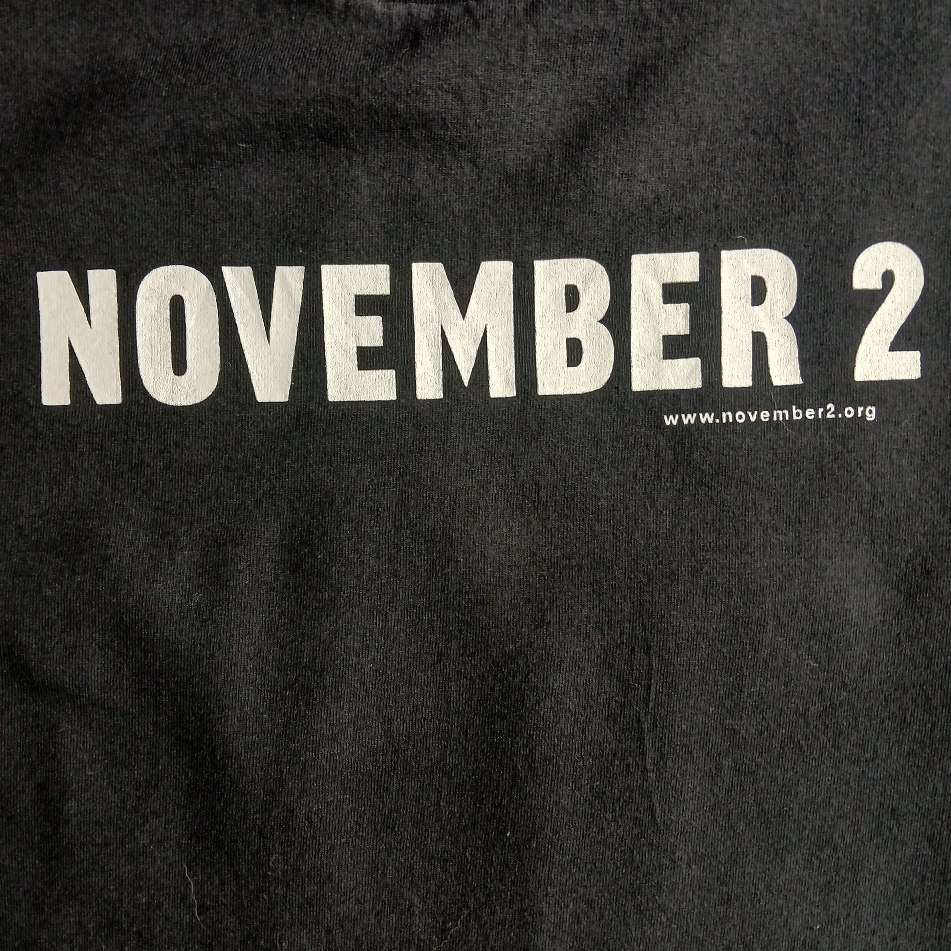 Black "November 2" T-shirt with the print November 2 on front, No prints on back.